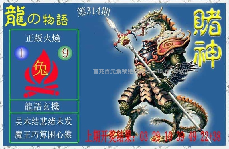 | 315期:解澳彩签牌 精准提供生肖:猪虎兔马 精准波色+大小:绿蓝波+大 |